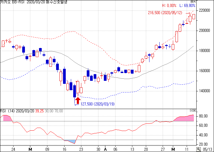 - 매수 : RSI가 30선 상향 돌파시 매수